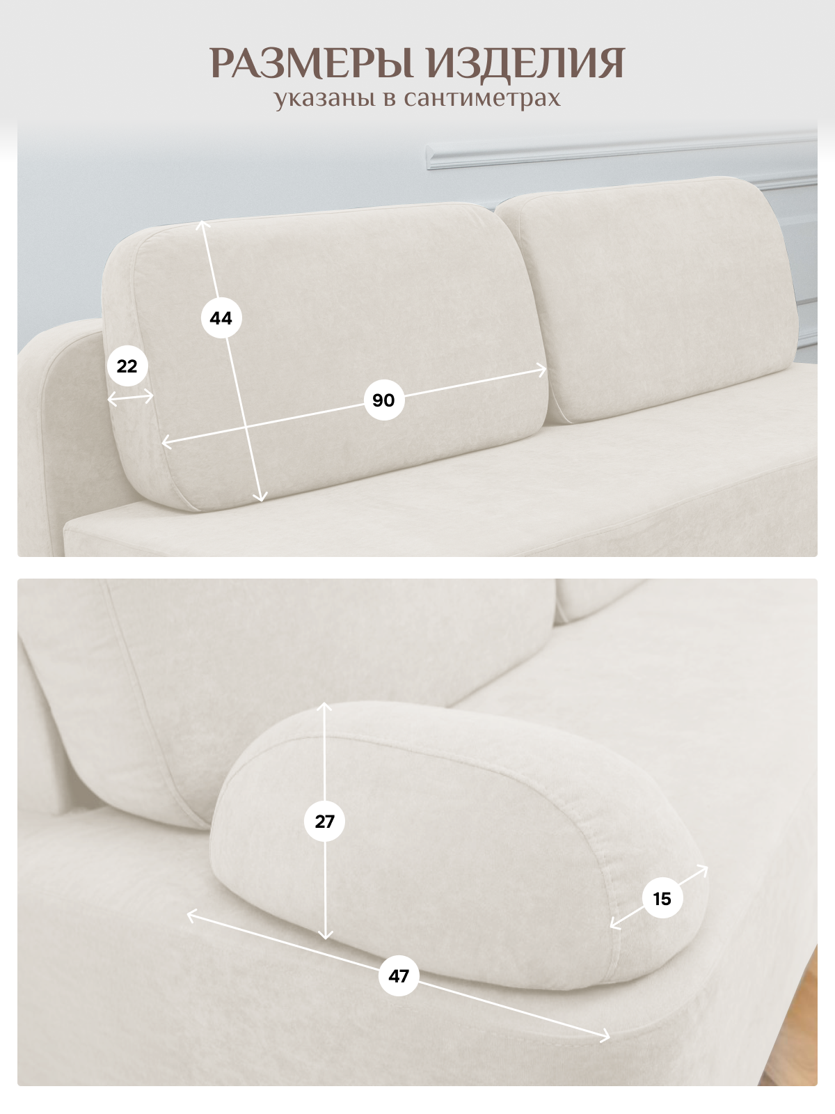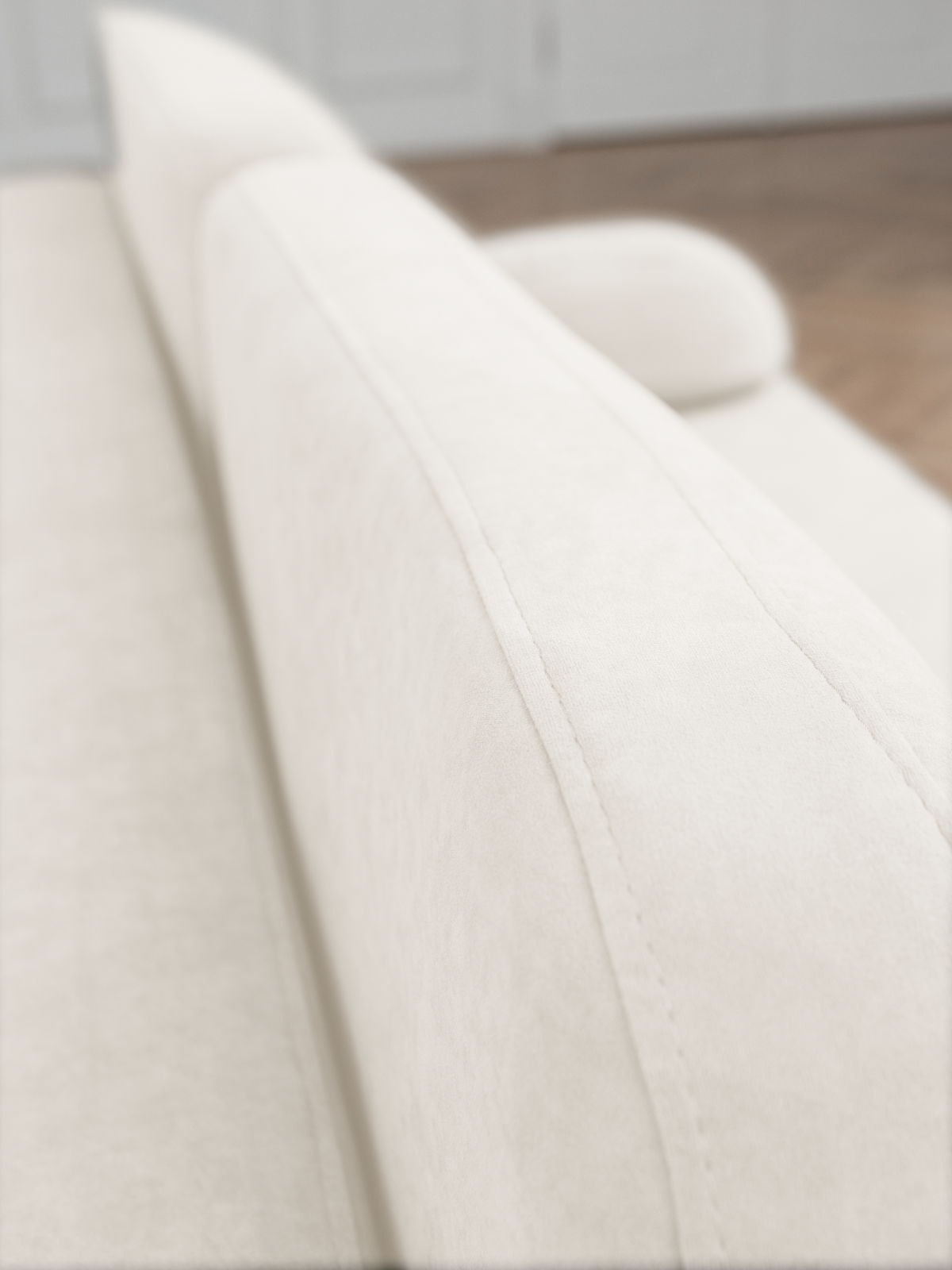 Используемая ткань - износостойкий мебельный велюр. Благодаря, бархатистому велюру диван дарит комфорт всему телу. А износостойкость ткани и лёгкий уход за ней позволяет использовать мебель без дополнительных чехлов. Одно движение руки и пролитый сок или кофе уже не оставят следа на мягкой мебели.