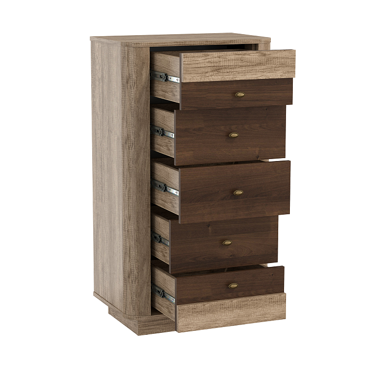 Комод 34.12 Фантазия (дуб каньон / дуб кальяри / ДВПО: венге / профиль: Masa Decor дуб каньон) исполняется в классическом стиле и спокойных цветах. Модель сочетает в себе простоту и функциональность, но при этом не выглядит громоздко. Она гармонично впишется в пространство, не утяжеляя его.