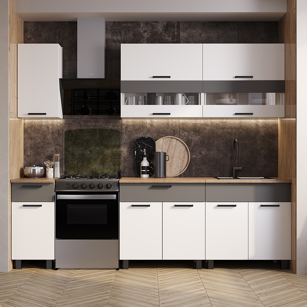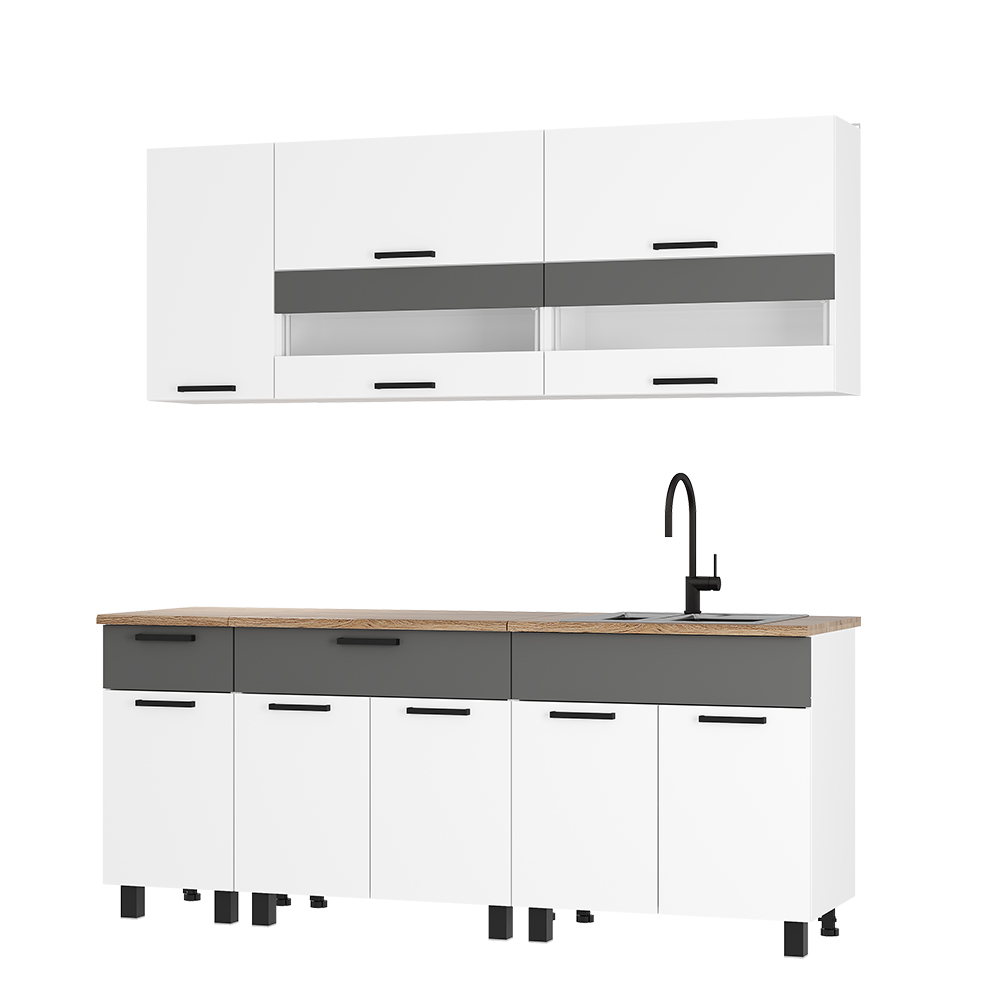 Кухонный гарнитур Монтана 2000 мм белый/графит (БТС)