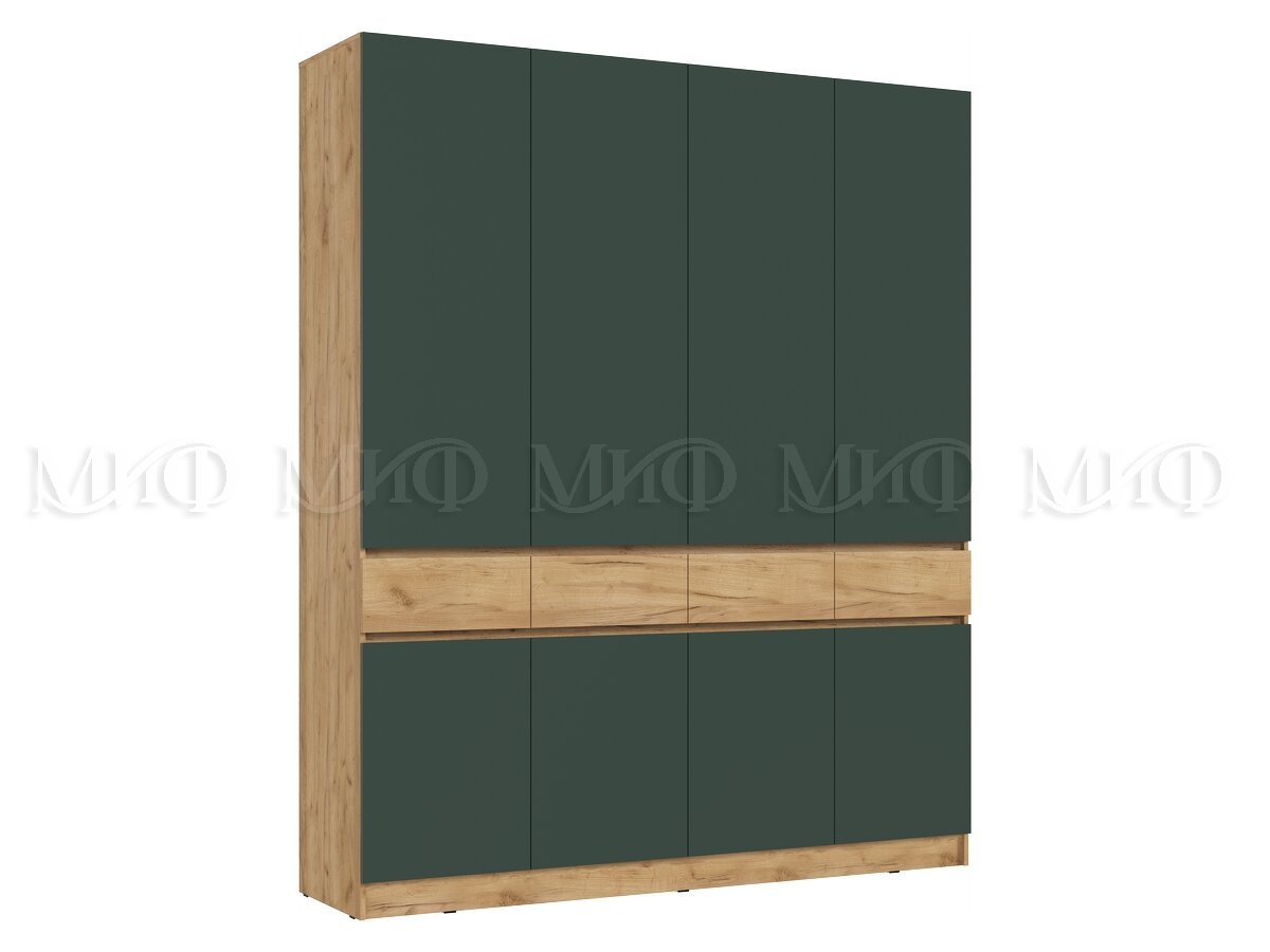 Шкаф 2000 мм 4-х ств. Роджина крафт/изумруд (Миф)