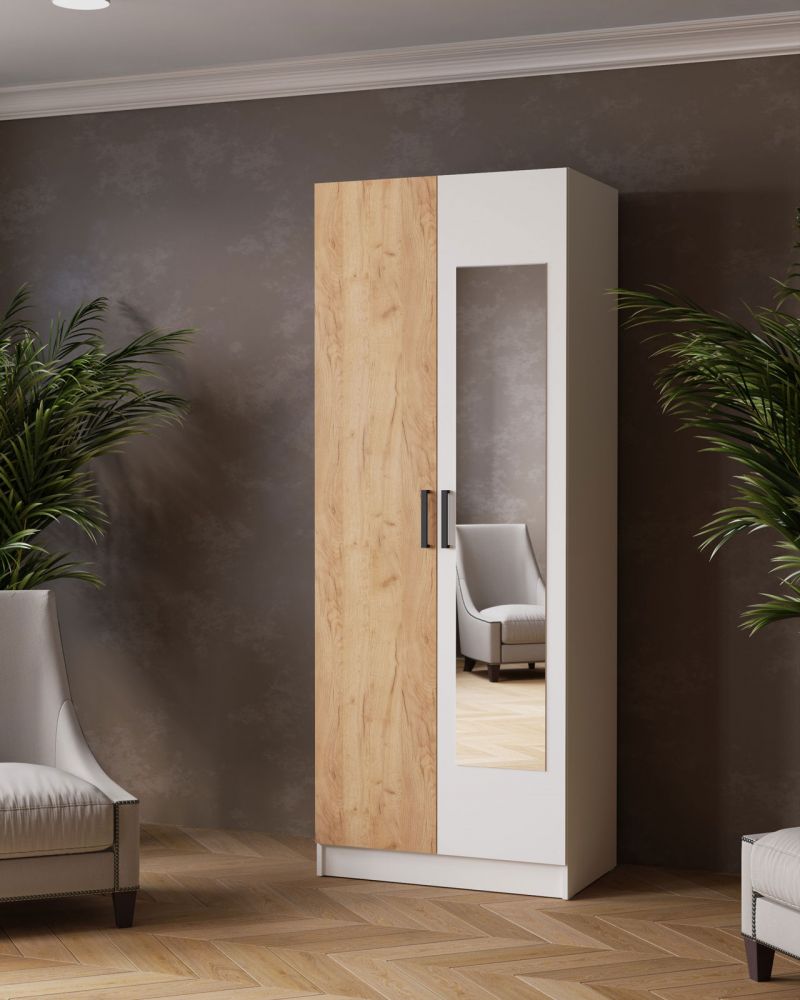 Артикул: A63779Шкаф 2000 мм Ларс с зеркалом Белый/Дуб крафт (Микон)