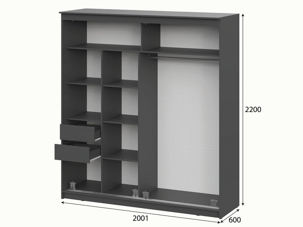 Шкаф-купе ШКП-3 2000 мм графит (СВ)