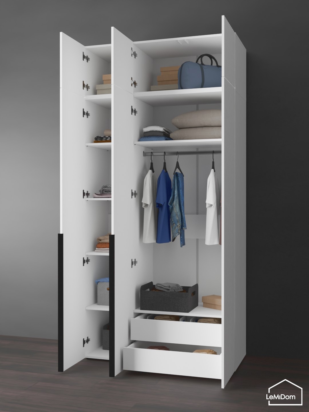 Артикул: A64156Шкаф с антресолью 800 мм Linnea MHR-2A-3 2450х800х510 (Белый-М 11.1.1)